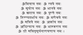 Om Aadityaaya Namah, Om Bhaaskaraaya Namah.