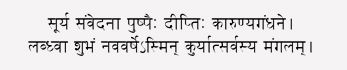 Surya Samvednapushpayeh Deeptih Karunyagandhane, Labdhva Shubham Navvarshesmin Kuryatsarvasya mangalam.