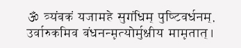 Urvarukam-iva Bandhanan-Mrityoram-Ukshiya-Maamritaat.