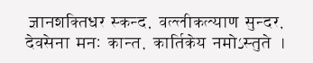 Goddess Devasena, to that Divine Kartikeya I offer adorations again and again.