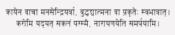 Kaayena Vaachaa Mansendri-yairvaa, Budhyat-manaa Vaa Prakriteh