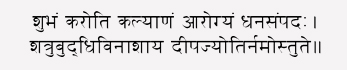 Shubham karoti kalyanam aarogyam dhanasampada,