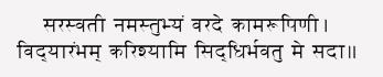 Vidyaarambham karishyami, Siddhirbhavatu me sada.